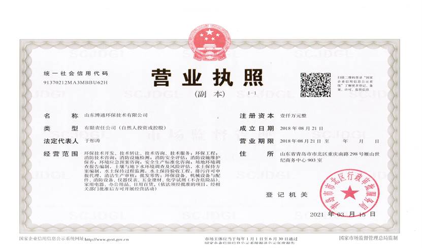 山東博通環(huán)保技術(shù)有限公司是一家專業(yè)從事環(huán)保、安全、消防的多元化技術(shù)服務公司,公司致力于打造專業(yè)的技術(shù)服務團隊,立足青島,輻射山東,服務范圍涵蓋:環(huán)保技術(shù)開發(fā)、技術(shù)轉(zhuǎn)讓、技術(shù)咨詢、技術(shù)服務;環(huán)保工程;消防技術(shù)咨詢;消防設施檢測;消防安全評估;消防設施維護保養(yǎng);環(huán)境應急預案咨詢;安全生產(chǎn)標準化咨詢;場地環(huán)境調(diào)查報告編制,土壤與地下水環(huán)境調(diào)查及風險評估,水土保持方案編制,水土保持過程監(jiān)測,水土保持驗收工程,排污許可申報代理,清潔生產(chǎn)審核;...